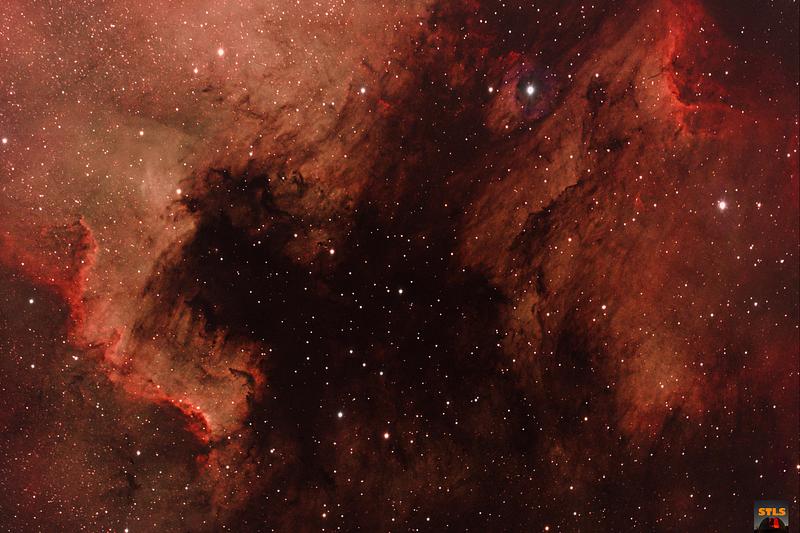 An iconic nebula pair in the constellation Cygnus high in the summer sky in the northern hemisphere, the NAm and Pelican as they are called are a pair of hydrogen emission nebulae where star formation is taking place. Perhaps someday as the temperatures cool there as star formation wanes, planets and stars will form deep in the dark of those dusty clouds.