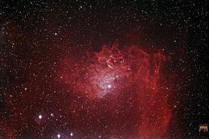 This curious nebula is associated with of the hot stars in the constellation of Auriga, It is both an emission nebula (red hydrogen glow) and reflection nebula (scattered blue starlight from dust). The interstellar medium is quite complicated here which can be seen by the many tendrils of iglowing gas that are all over the region.
