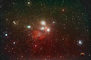 This little gem of a nebula has it all. From the glowing red excited hydrogen gas to the bluish white reflection nebulae, to the dark sinuous clouds of dust throughout, this nebula is impressive, complex, and will one day perhaps host life from its stellar offspring.