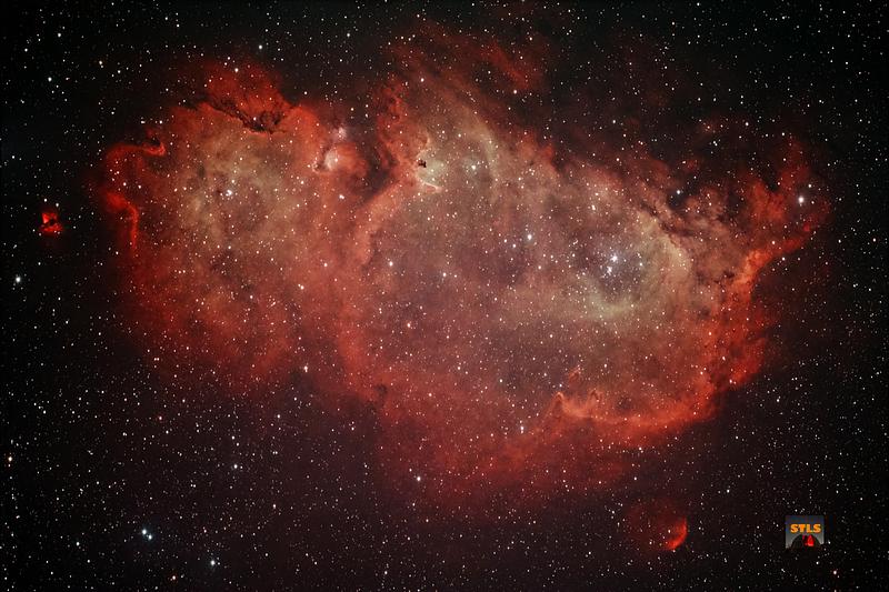This region is spectacular. You can clearly see many pillars of gas and dust eroded by powerful stellar radiation from the cluster in the nebula. These powerful winds have sculpted out a hollow central region which is clearly visible.